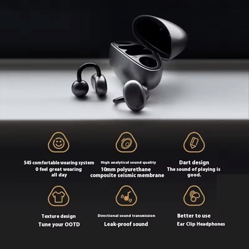 - 📦 Complete Package: Includes smooth-textured clip-on earbuds, charging case, and USB charging cable.