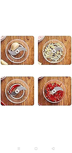 - Multifunction: About 250ml, with 2 sharp blades, it can chop garlic, ginger, peppers, vegetables, fruits, meats and more. Small chopper is also easy for you to store.
