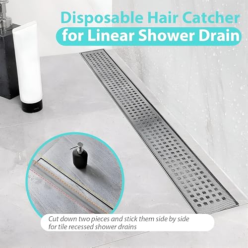 - This product features a universal size that can be applied to various floor drains, including both round and square types, with a roll length of 5 meters, which can be cut to desired lengths, and a width of 70mm that effectively covers hair and pet fur to prevent clogging.