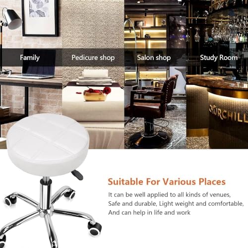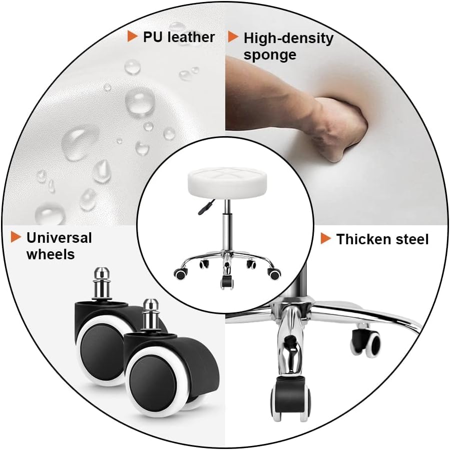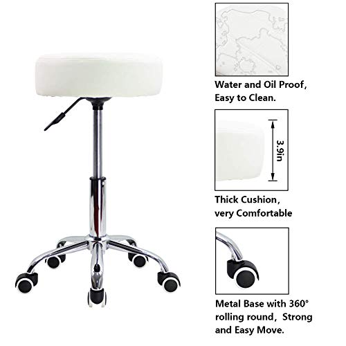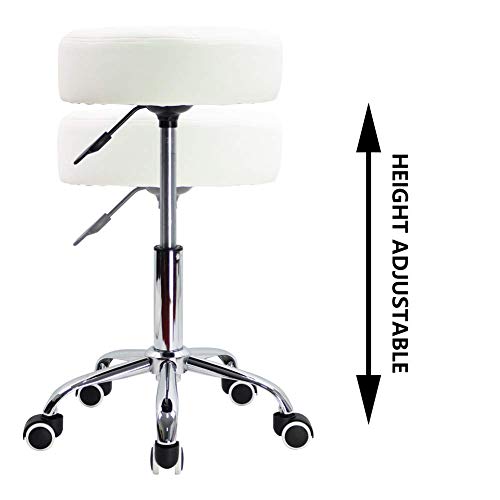 Finch Fox - Finch Fox® Round Rolling Stool Chair PU Leather Height Adjustable Shop Stool Swivel Drafting Work SPA Medical Salon Stools with Wheels Office Chair in White Color