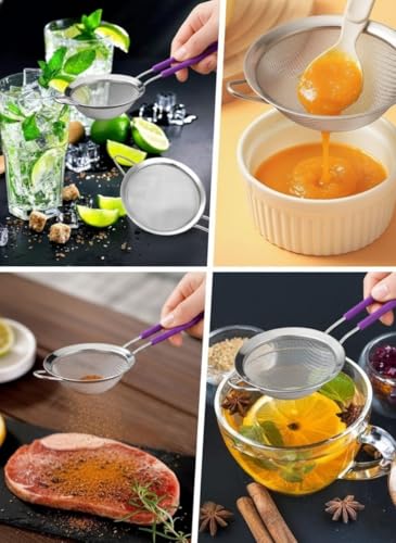 - Fine Mesh Strainer with Yellow Handle, Stainless Steel, Kitchen Sieve for Tea, Juice, Cooking