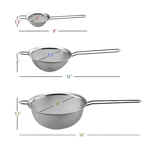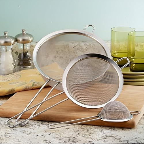 Generic - مصافي شبكية دقيقة - مجموعة مصافي مطبخ من الفولاذ المقاوم للصدأ مكونة من 3 قطع لتصفية الشاي والعصير والبيض بمقابض مريحة