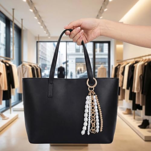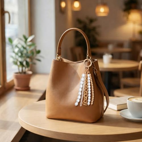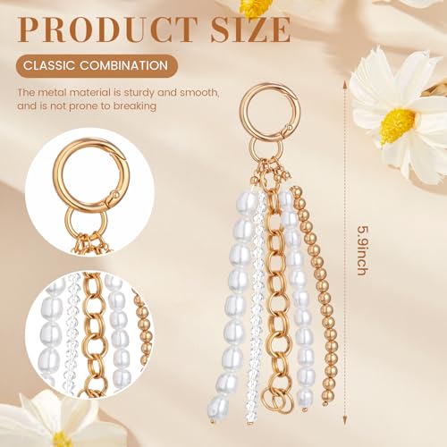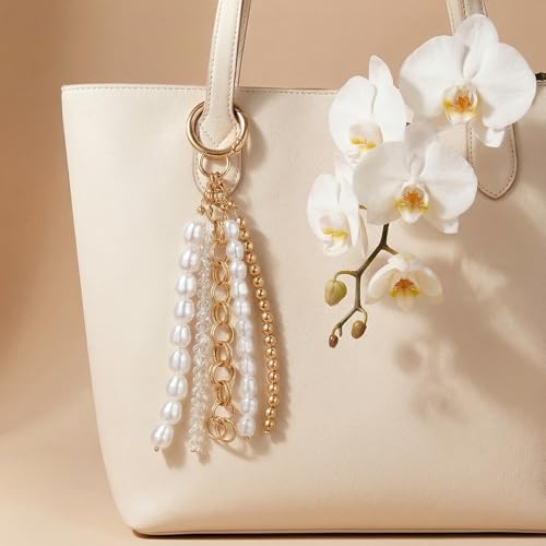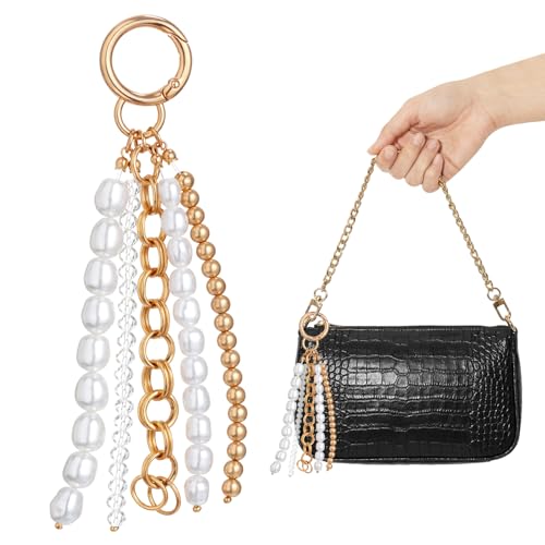 FineCheer - Pearl Bag Charm Crystal Beaded Keychain Gold Purse Charms Classy Shoulder Chain Bags Accessories for Women Various Handbags Backpacks Wallets