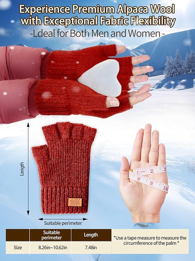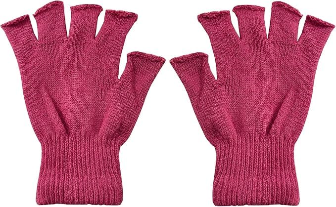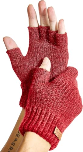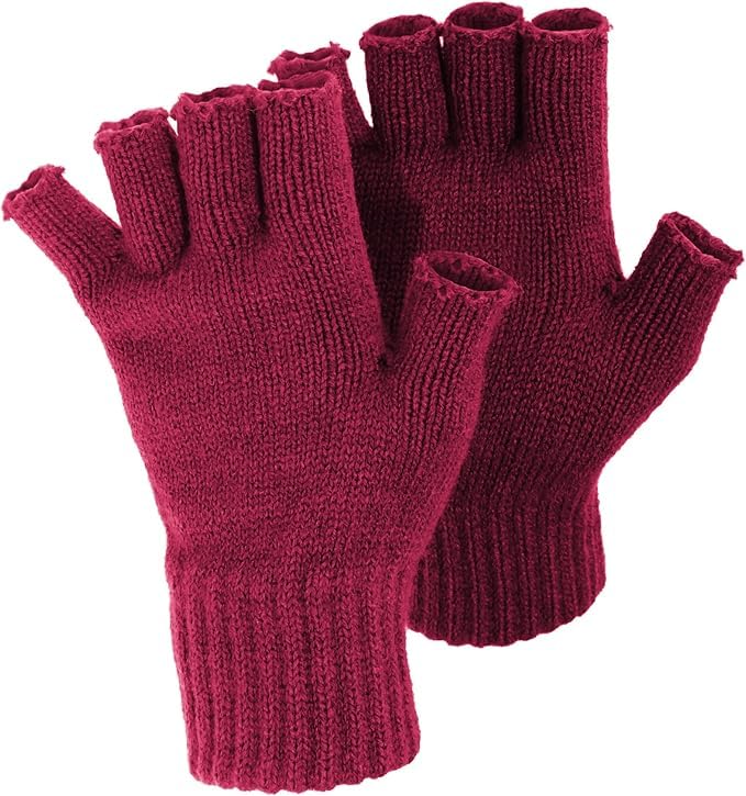 Generic - قفازات كشمير بدون أصابع، صوفية دافئة للشتاء، محبوكة للركض، ركوب الدراجات وقيادة السيارات للرجال والنساء، أحمر غامق، مقاس واحد