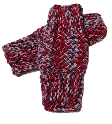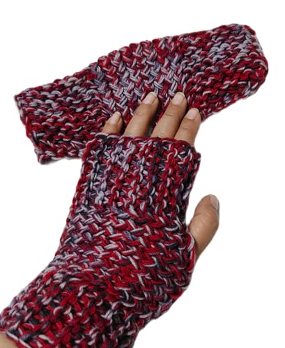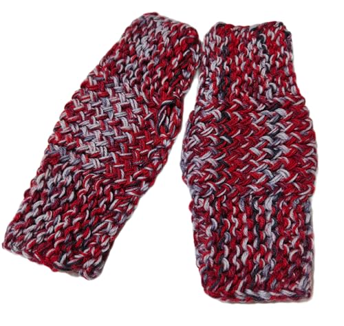 Generic - Fingerless Knitted Hand Gloves, Multicolor Red and Grey, Warm Fleece, Hand Knitting Pattern