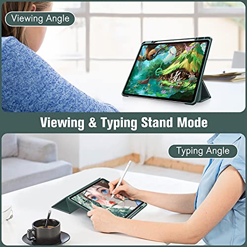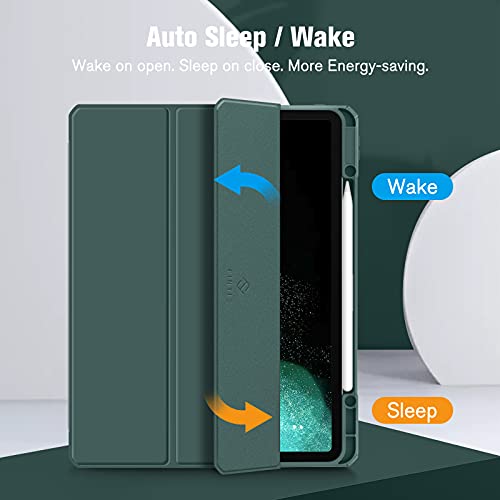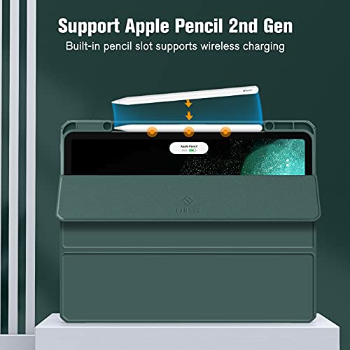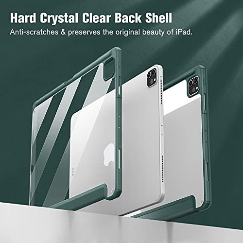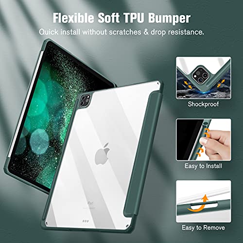 FINTIE - FINTIE Hybrid Case Compatible with iPad Pro 12.9 inch (2022/2021/2020/2018, 6th/5th/4th/3rd Generation) - Shockproof Clear Back Cover with Pencil Holder, Auto Wake/Sleep, Midnight Green