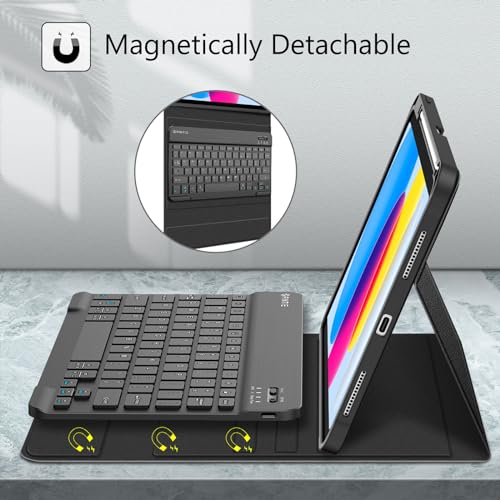 FINTIE - Fintie Keyboard Case for iPad 10th Generation 10.9 Inch Tablet (2022 Release) with Pencil Holder - Soft TPU Back Cover with Magnetically Detachable Bluetooth Keyboard, Black