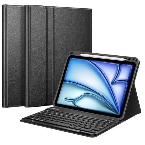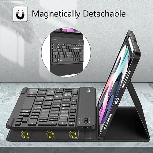 FINTIE - جراب حماية خلفي ناعم من البولي يوريثين المقاوم للحرارة مع حامل قلم ولوحة مفاتيح مغناطيسية قابلة للإزالة بتصميم كويرتز لجهاز اي باد اير 5 2022 / اي باد اير 4 2020 بشاشة 10.9 بوصة من فينتاي، لون أسود