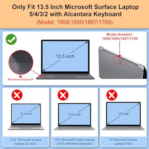 - مصمم خصيصًا لجهاز مايكروسوفت سيرفس لاب توب 5 2022 مقاس 13.5 انش / سيرفس لاب توب 4 2021 / لابتوب سيرفس 3 2019 / لابتوب سيرفس 2 2018 مع كيبورد الكانتارا. (الموديل: 1958 / 1950 / 1867 / 1769).