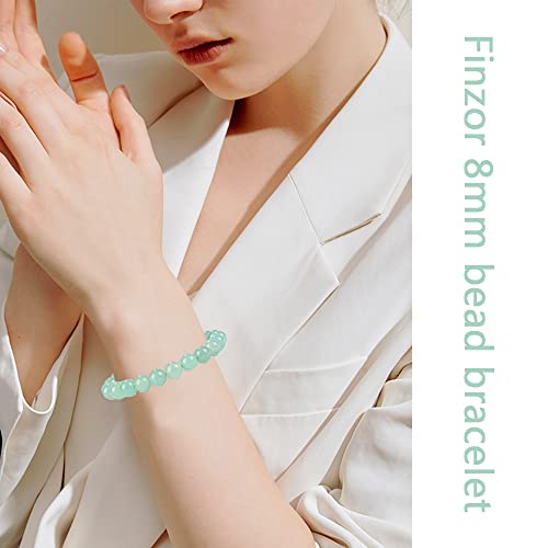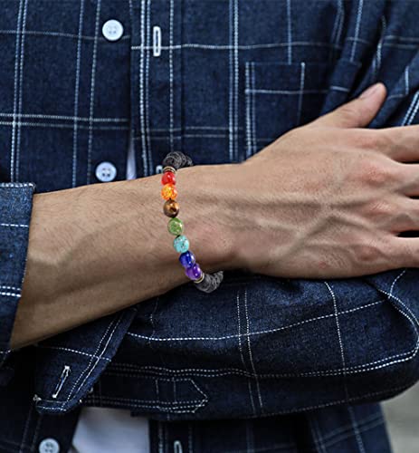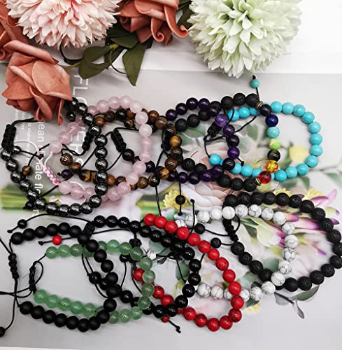 FINZOR - 12Pcs 8mm Healing Stone Beads Bracelets for Women Men Semi-precious Gemstone Crystal Beaded Bracelets Lava Rock Tiger Eye Amethyst Chakra Bracelets Unisex Adjustable, 8MM, Stone, obsidian