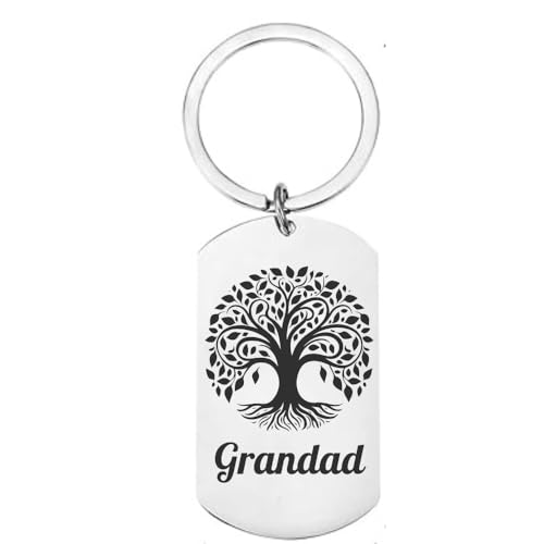 First Glass Designs - Personalised Tree of Life Keyring for Grandad, Stainless Steel Dog Tag, Laser Engraved Message Option