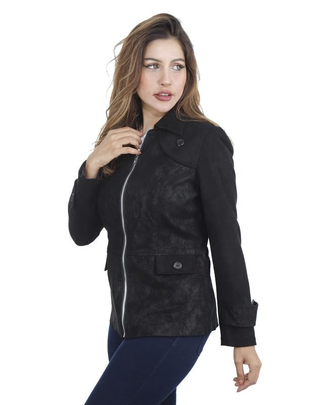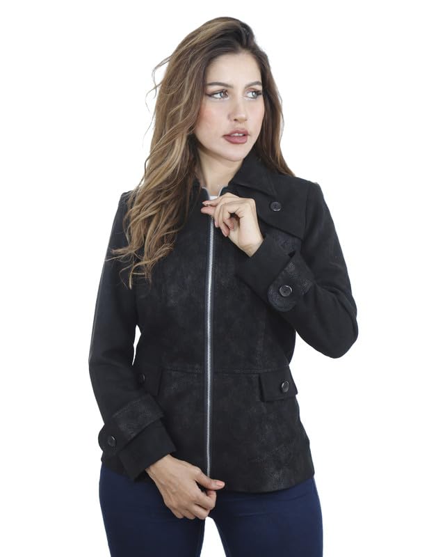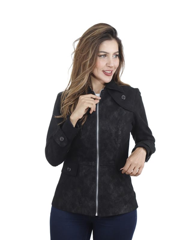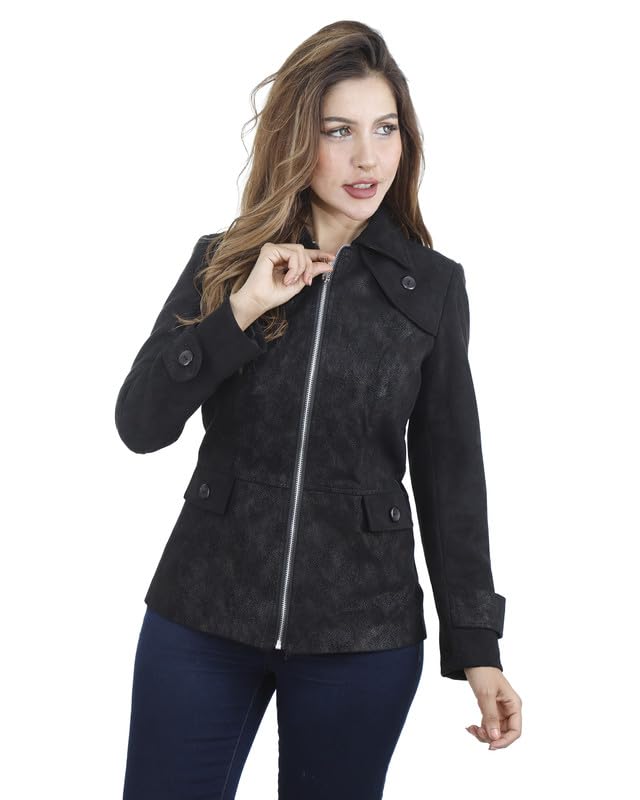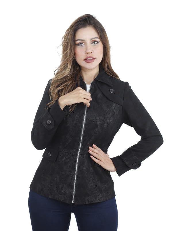 first mode - first mode Leather and Suede Zipper Jacket for Women