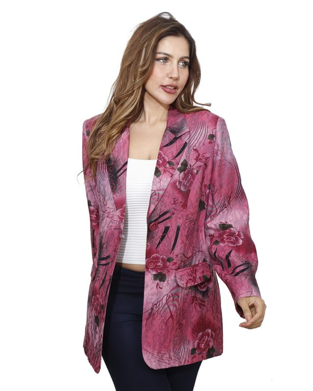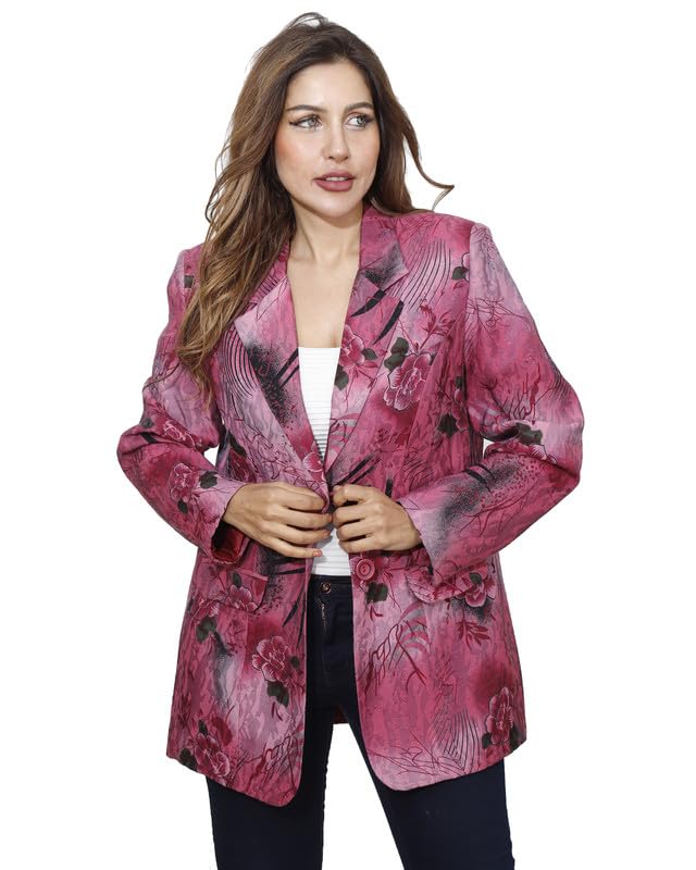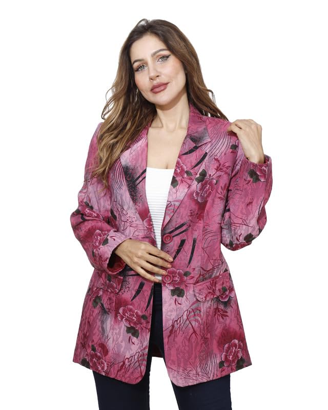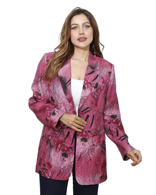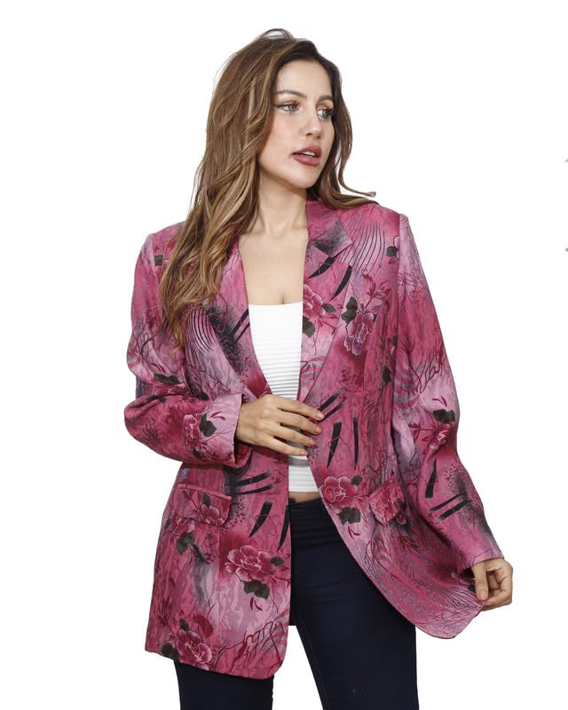 first mode - first mode Women's Floral Satin River Jacket Size 46 - Fuchsia