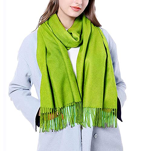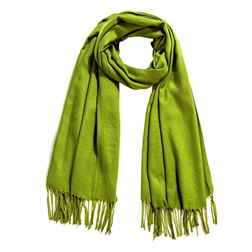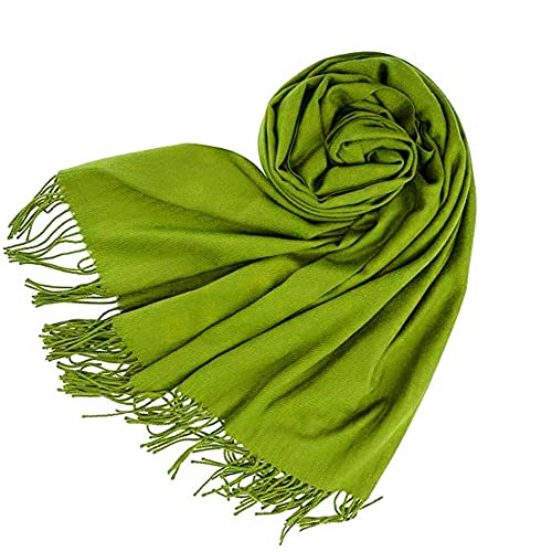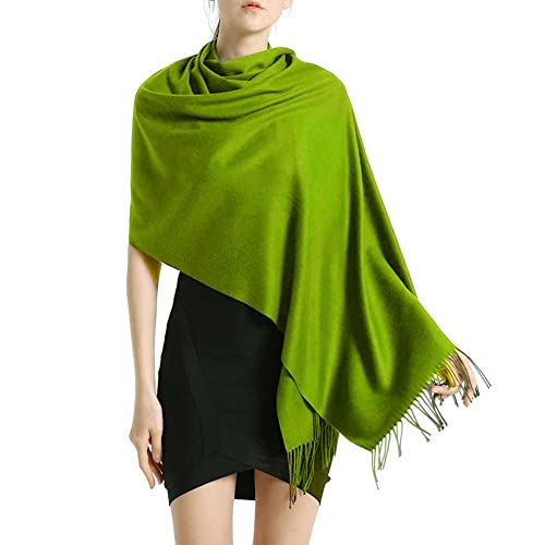 Fish Man - Fish Man Women's Scarf Pashmina Shawl Warm Winter Pashmina Wraps Oversized Cashmere Feel Scarves with Tassels, Olive, XL