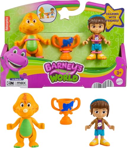 - Includes poseable Barney’s Friend Mel and Billy Dino figures plus a trophy accessory piece