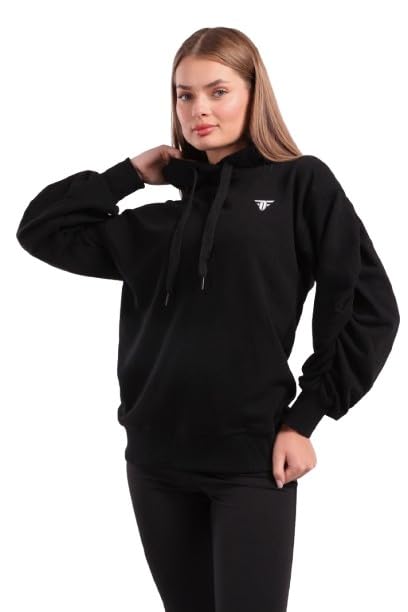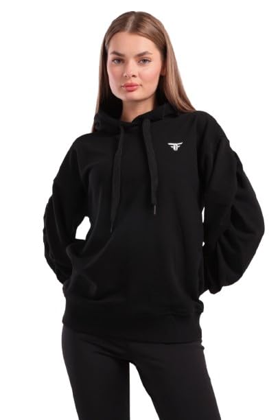 Fit Freak - womens Black Ruched Sleeve Hoodie Sweatshirt (pack of 1)