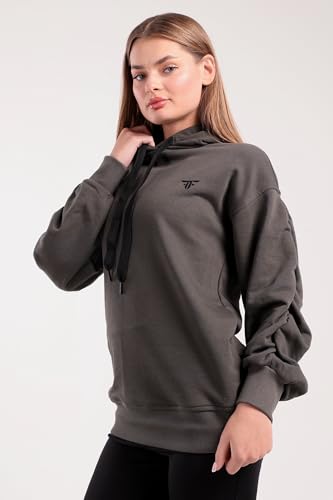 Fit Freak - Womens Khaki Ruched Sleeve Hoodie Hooded Sweatshirt (pack of 1)