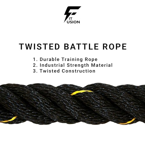 Fit Fusion - Fit Fusion® PolyPropelene 50FT Battle Rope with Anchor Strap for Gym, Battle Rope for Home, Heave Rope,9.3 KG, 1.5 Inches Diameter