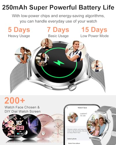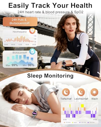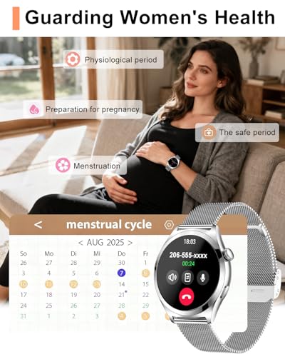 - Attention to Women's Health Protection: The new smart watch for women can monitor real-time heart rate, measure blood pressure and blood oxygen levels, automatically record sleep and many other functions. There is also a menstrual cycle tracking function that helps women predict and record their period and ovulation for better care and more accurate preparation for a successful pregnancy and delivery.