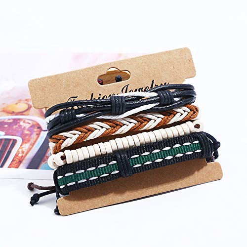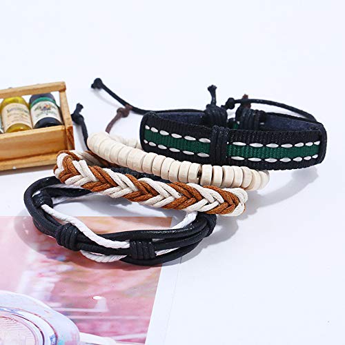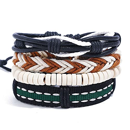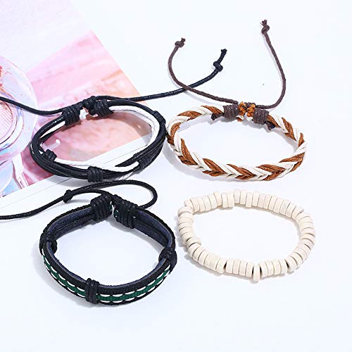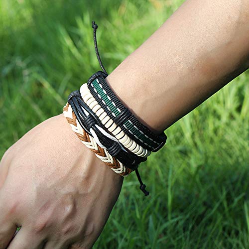 FITOUNA - Women Wrap Bracelet Friendship Beaded Bracelet Multilayered Leather Braided Bangle Wrist Cuff Bangles Braided Stackable Wristabands, Wood/Leather, no gemstone