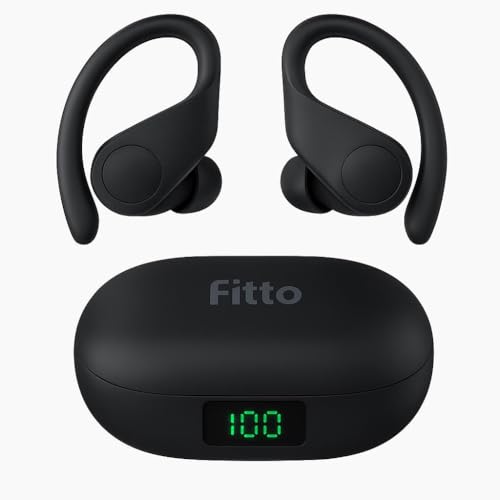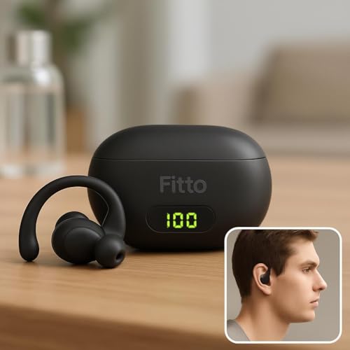 FITTO - سماعات اذن بلوتوث بمشبك اذن من فيتو - سماعات اذن لاسلكية سوداء للرياضة والاستخدام اليومي