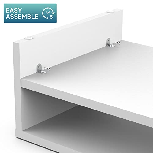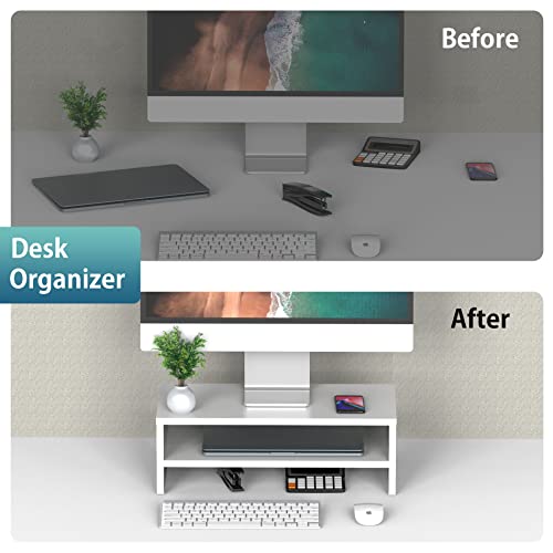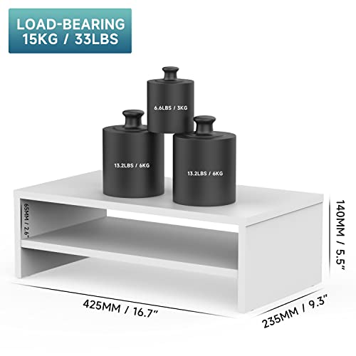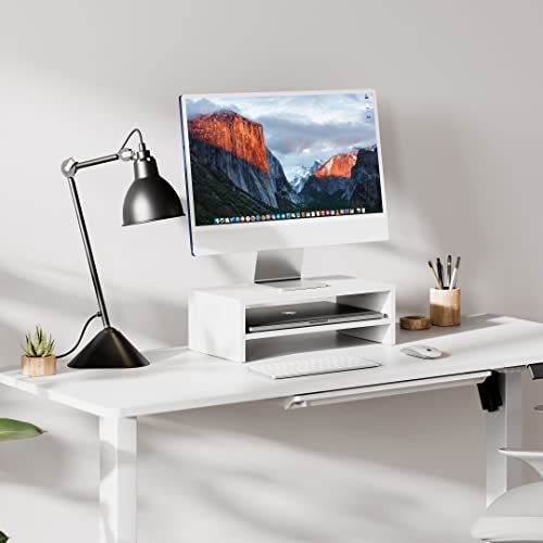 FITUEYES - حامل شاشة خشبي من طبقتين مقاس مع رف تخزين، منظم مكتب لمستلزمات المكتب المنزلية DT204205WW من فيت يو ايز، 42.4 سم، أبيض