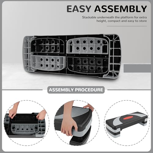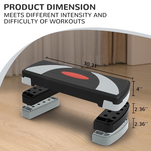 Fitvids - Fitvids Step Aerobic Platform, 31" Exercise Step with 3 levels Adjustable Height, 4 Stackable Risers, Fitness Training Workout Stepper for Home Gym, Cardio Strength, Black & Gray