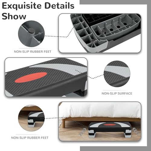 - Textured surface is non-slip, and shock absorbing, the surface is a slip-free, meaning you can have stability with every single set of steps