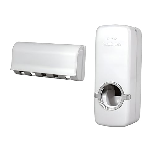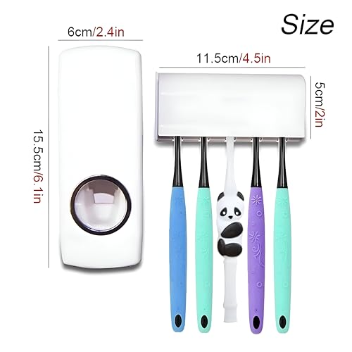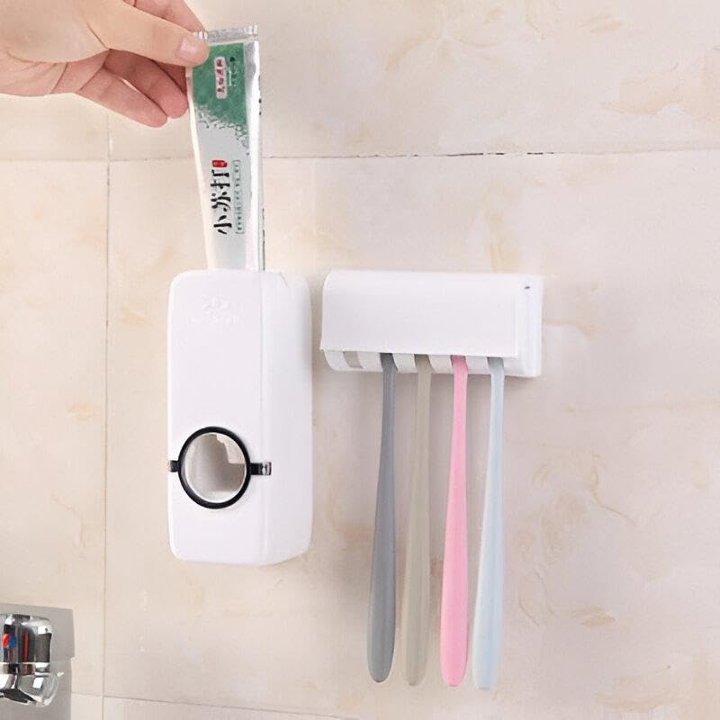 Generic - Five Brush Holder - Dedicated storage for toothpaste and toothbrushes with an automatic dispenser and a five-brush rack, plus integrated bathroom organizer and a white body to blend with any sink area
