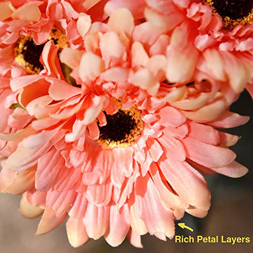 - FLEXIBLE & EASY TO MAINTAIN — Each daisy gerbera stem is bendable and trimmable for convenient flower arranging in a flower vase or for bridal bouquet artificial flowers. Gerbera daisies are easy to clean, just rinse with cold water