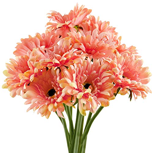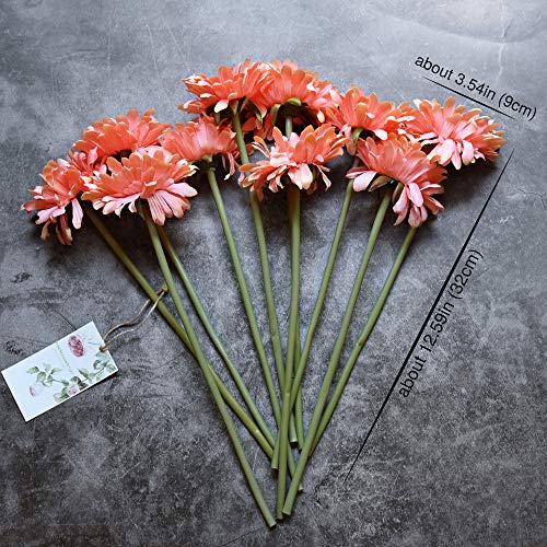 - FULL RICH BLOOMS — Gerbera daisy silk come in 10 stem flower bundles. Intricately and lushly layered with orange flower petals for a natural lifelike vibrant look throughout the year without any maintaining