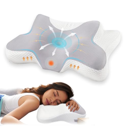 Fixwal - Fixwal® Cervical Pillow for Sleeping, Memory Foam Orthopedic Side Sleeper Pillow for Neck Pain Relief and Neck Support- Grey