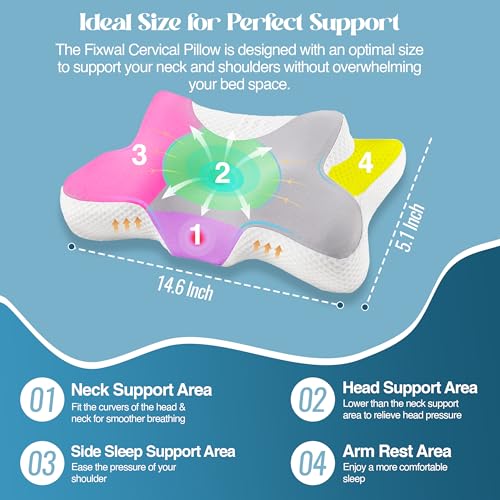 - Cervical Pillow for Neck Pain Relief: Fixwal’s ergonomic cervical pillow aligns head, neck, and shoulders, reducing pain and stiffness. Perfect for side sleeper pillow needs, it promotes restful sleep.
