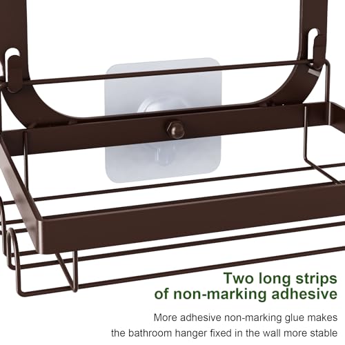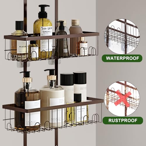 Fixwal - فيكسوال حامل دش فوق رأس الدش، رف معلق للحمام بدون ثقب، سلة تخزين مع خطافات وحوامل صابون ومواد لاصقة، مقاوم للصدا والماء ومضاد للتأرجح، برونزي