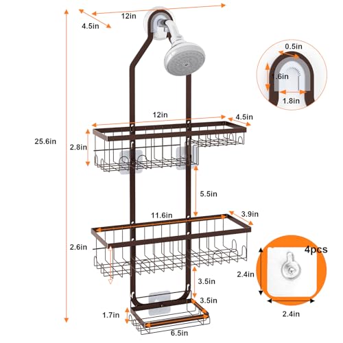 - 【زيادة مساحة الحمام】 حامل الدش الخاص بنا هو حل تخزين متعدد الاستخدامات وعملي لاستحمامك. بفضل الطبقات الثلاث والسعة الكبيرة، فإنه يوفر مساحة واسعة لجميع مستلزمات الاستحمام الخاصة بك مثل جل الاستحمام والشامبو والبلسم والمسكرات وغسول الوجه وغيرها من الأشياء. حجم المنتج بالكامل: 12*4.55*25.6 انش. يرجى الرجوع إلى صور المنتج لمعرفة الأبعاد التفصيلية.