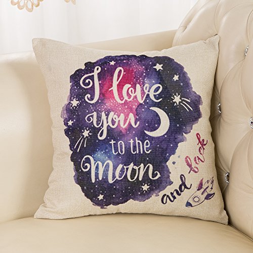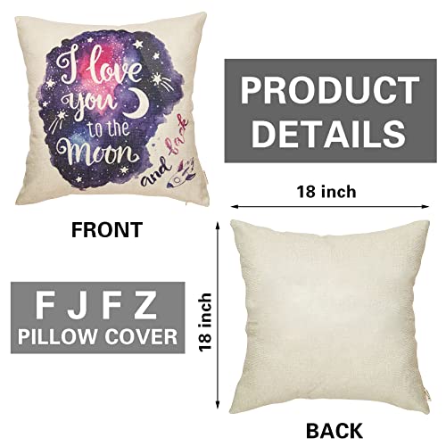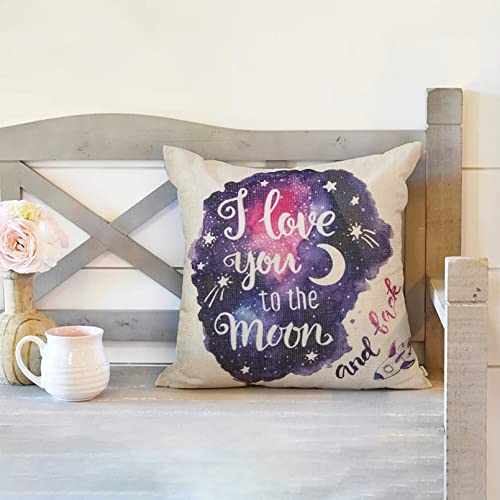 Fjfz - Cotton Linen Home Decorative Throw Pillow Cover 18" x 18", Galaxy Star Cushion Case for Sofa Couch Watercolor I Love You to The Moon and Back Lover Gift Decor Valentine’s Day Decoration