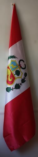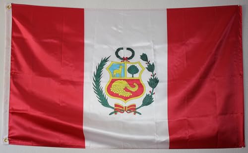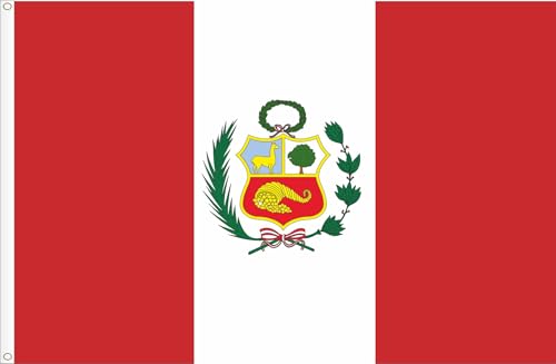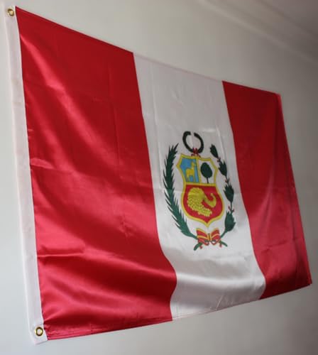 WORLDFLAGS - FLAG OF PERU WITH SHIELD. PREMIUM SATIN QUALITY. LARGE SIZE 150X90 CM.