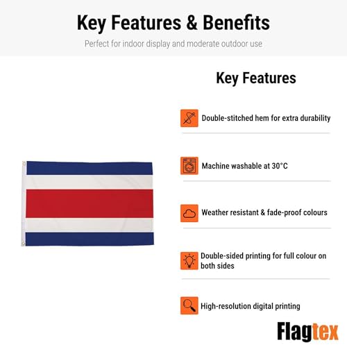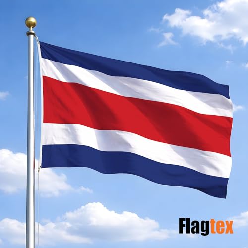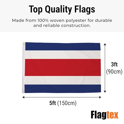 Flagtex - علم كوستاريكا من فلاجتكس - علم وطني فاخر مع بوليستر منسوج وفتحات (5 قدم × 3 قدم (150 سم × 90 سم))