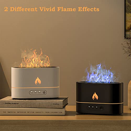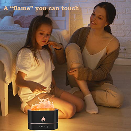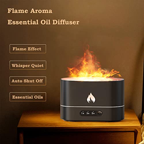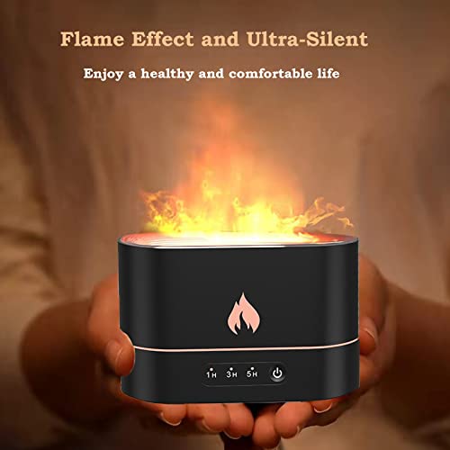 AWH - Flame Air Diffuser, Aroma Diffuser, Noiseless Desk Flame Humidifier for Bedroom, Home, Office, Yoga Essential Oil Diffuser with No-Water Auto-Off Protection, 2 Color Lights, 3 Timer Settings (Black)