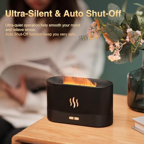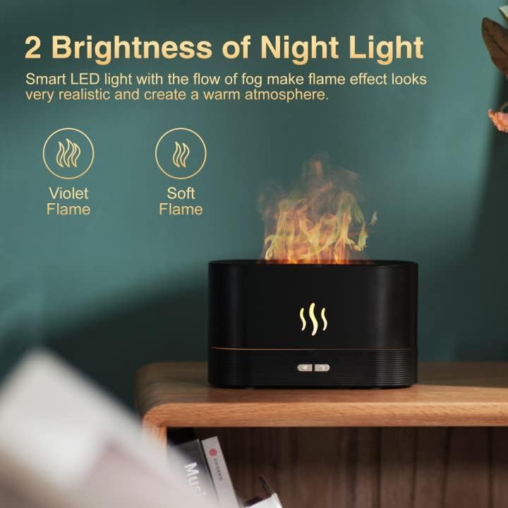 Generic - Flame Mist Humidifier, 4 Lighting Modes (Bright Flame Light, Quiet Flame Light, 10 Color Changing and Solid Color) Desktop USB Aromatherapy Humidifier for Home Office (Black)