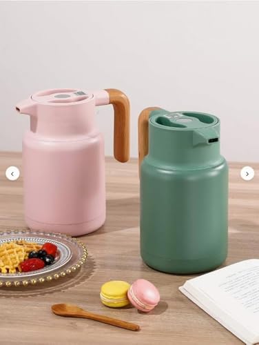 Flamer - ترمس حراري مفرغ من الهواء بيد خشبية سعة 1 لتر من فلامر، لون أخضر - F-490