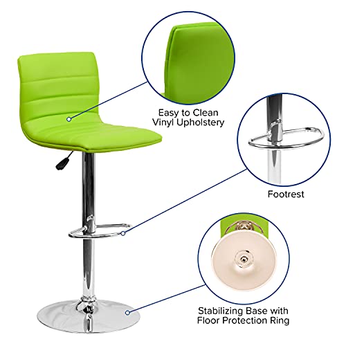 Flash Furniture - مقعد بار عصري قابل للتعديل فينيل مع ظهر من فلاش فيرنتشر، مقعد دوار بارتفاع المنضدة بقاعدة من الكروم، أخضر، عبوة من قطعة واحدة، CH-92023
