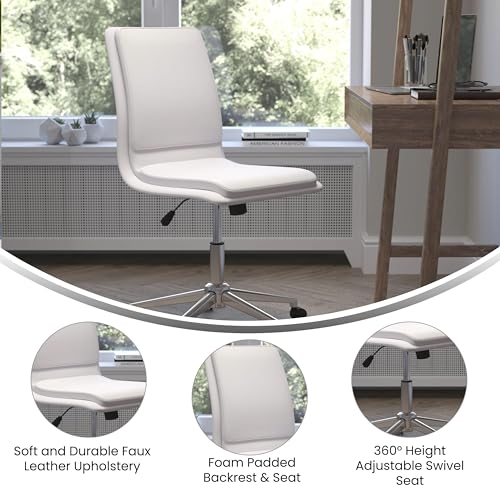 Flash Furniture - Flash Furniture Leather Task Office Chair, 24.5" Dx19.25 Wx40.25-36.25" H, White