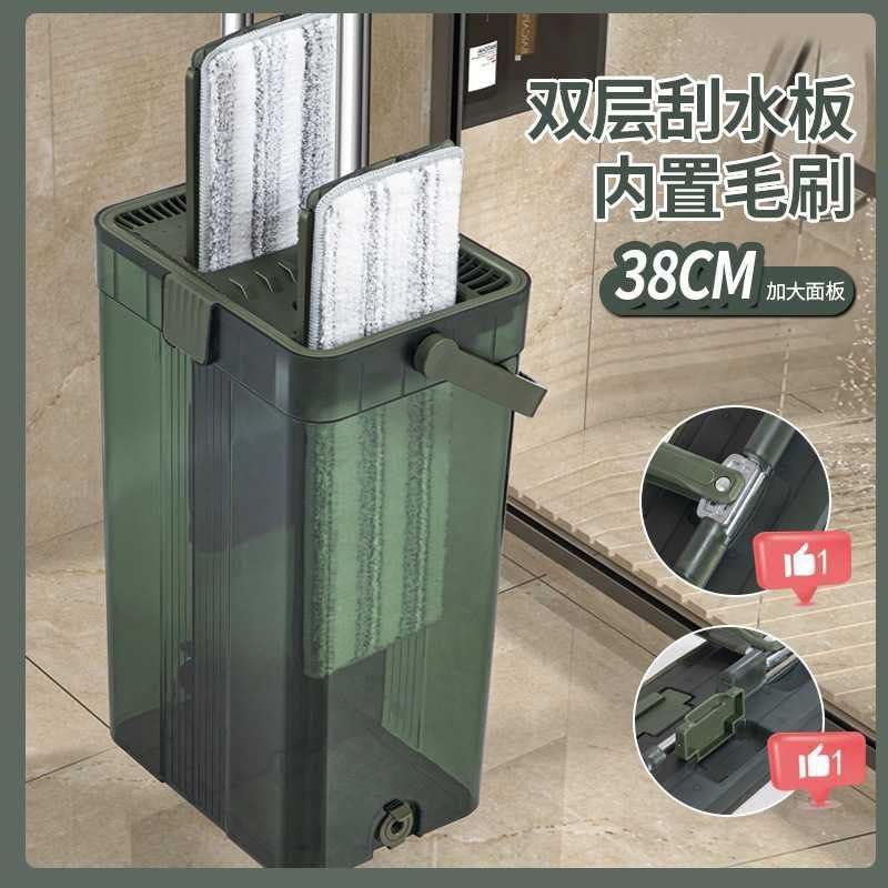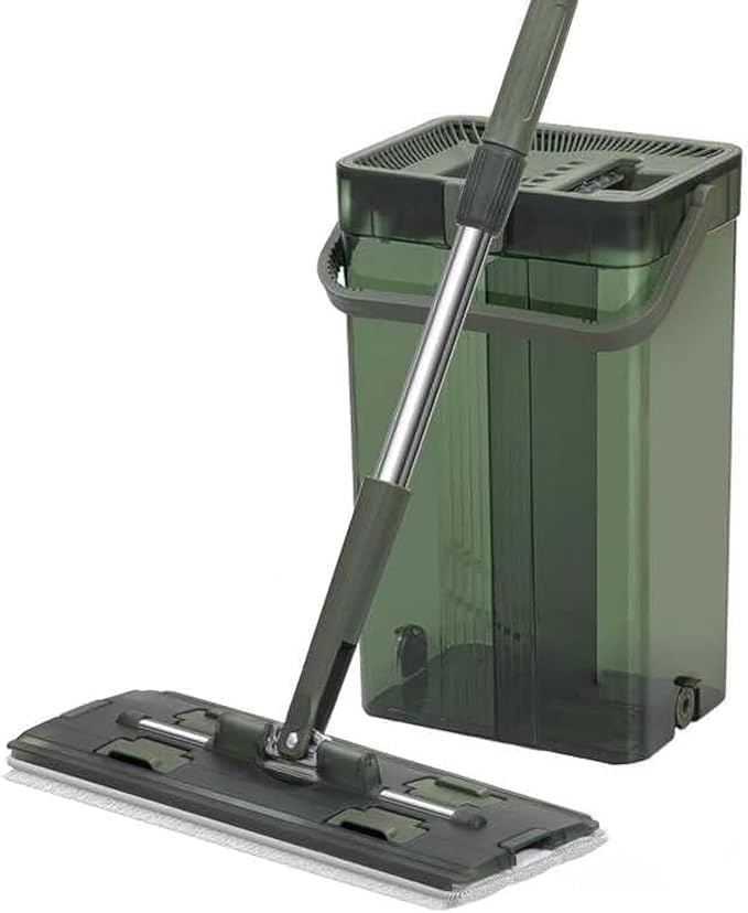Generic - Flat Mop and Bucket System with Double-Sided Scraper, 38cm Wide Mop Head, Self-Cleaning, Green