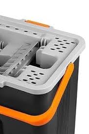 - مزايا التحريك: مجهزة بعجلات دوارة سلسة ومقابض مريحة باللونين الأسود والرمادي مع لمسات برتقالية لحركة سهلة.