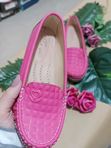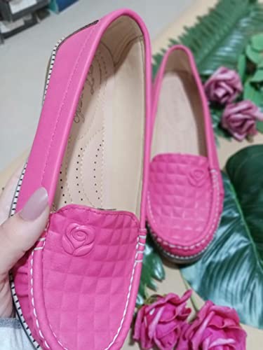Generic - Flat shoes for women & girls Hot pink fushia color loafer casual medical & comfort flower theme faux leather fashion foot wear, 38 EU
