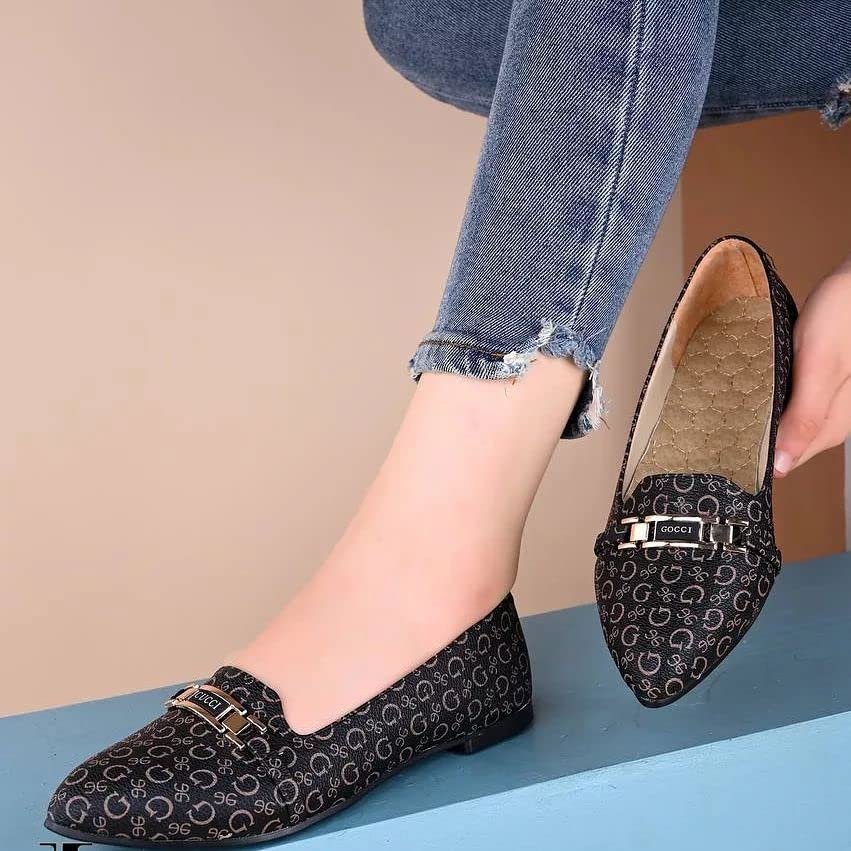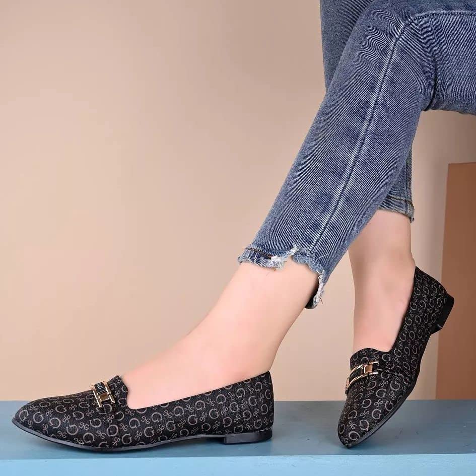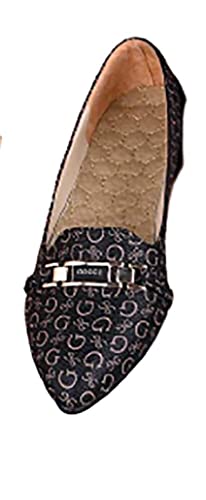 Generic - Flat shoes for women slip on for woman and teens girls fine faux leather metal accessorie black color ballerina footwear, 37 EU