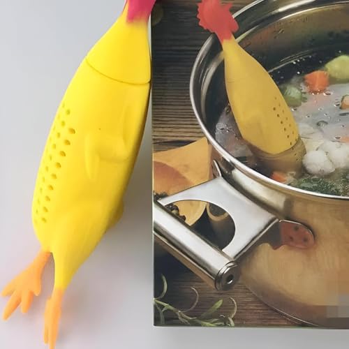 - The product is a delightful herb infuser designed in the shape of a classic rubber chicken, making it not only functional but also a funny addition to your cooking. It's perfect for adding flavor to soups and broths by filling it with your favorite herbs, embodying a quirky twist to traditional cooking methods.