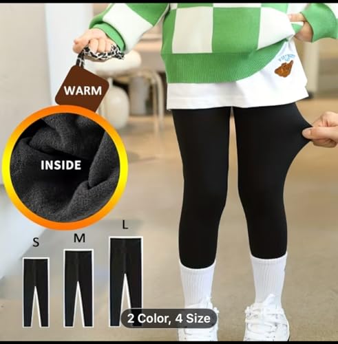 Generic - Fleece Lined Thermal Leggings for Kids, Black, Ages 5-7 Years, Winter Warm Pants