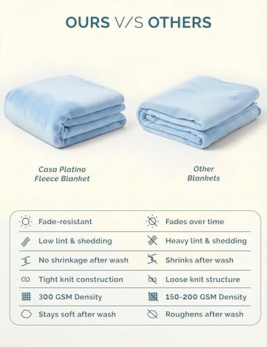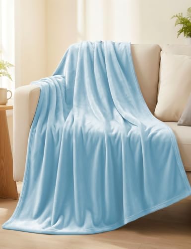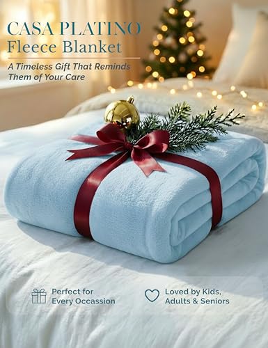 Casa Platino - Fleece Throw Blanket – Soft Flannel Couch Blanket 50x60 – Lightweight & Cozy for All Seasons – Great Gift for Women, Men, Travel or Home -Light Blue
